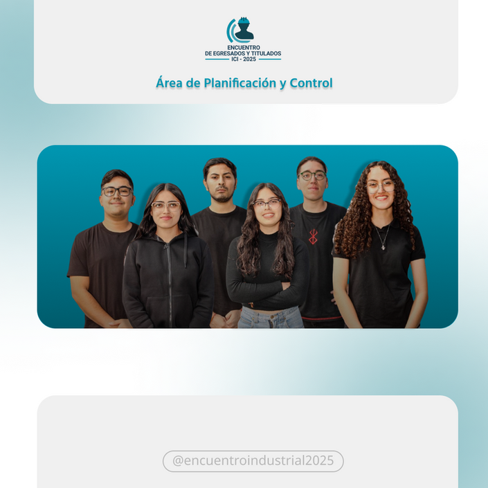 Aquí se presenta el equipo que hace posible el Encuentro de Egresados y Titulados 2025: estudiantes de 5º año de Ingeniería Civil Industrial que lideran cada área con visión y compromiso. En esta sección se encontrarán fotos grupales de los equipos junto a sus directores y directoras para conocer a las personas detrás de la organización. Esta es la comunidad que transforma ideas en un evento real, conectando generaciones y llevando la identidad ICI desde las aulas hasta Iquique.